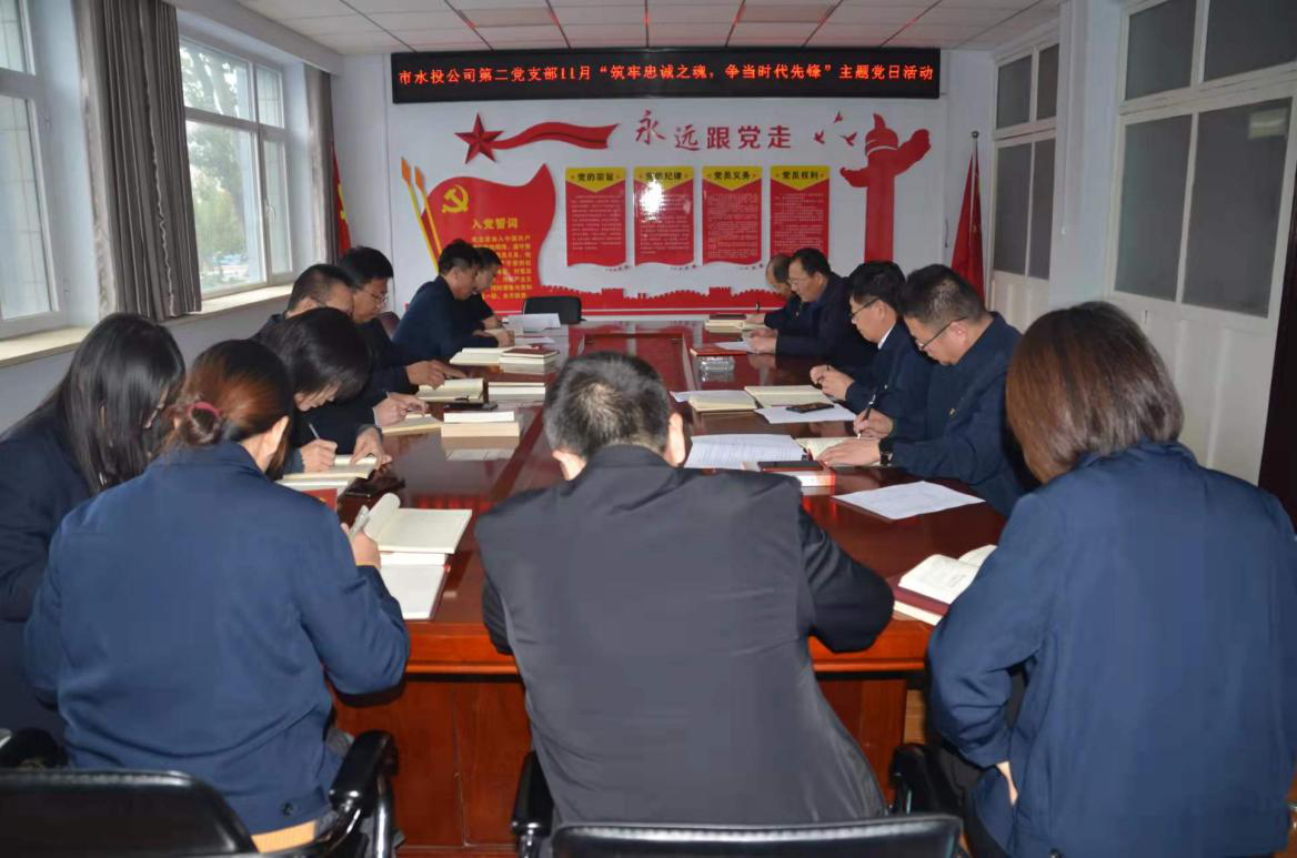 按照水投公司黨委統(tǒng)一部署要求,第二黨支部2021年11月1日下午組織全體黨員、積極分子、群眾代表開(kāi)展了“筑牢忠誠(chéng)之魂,爭(zhēng)當(dāng)時(shí)代先鋒”主題黨日活動(dòng),會(huì)議由支部書(shū)記吳爭(zhēng)兵主持。