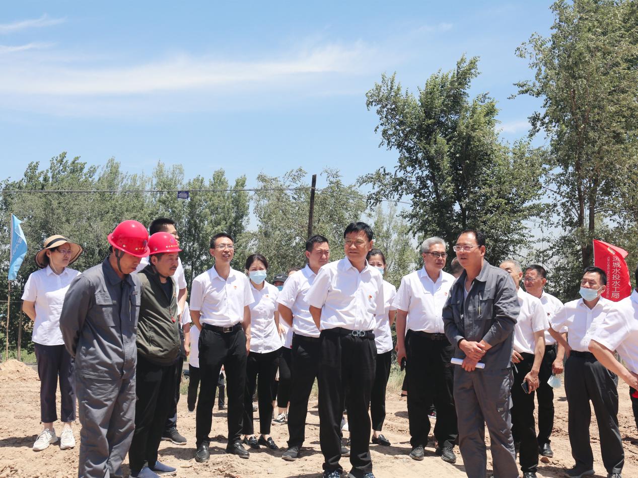 在熱火朝天的工地現(xiàn)場,王望寬同志帶領(lǐng)大家重溫了入黨誓詞,鼓舞振奮了士氣,激勵了大家在本職崗位上建功立業(yè)的決心和信心,也切實體驗了高溫下項目一線建設(shè)者的艱辛。