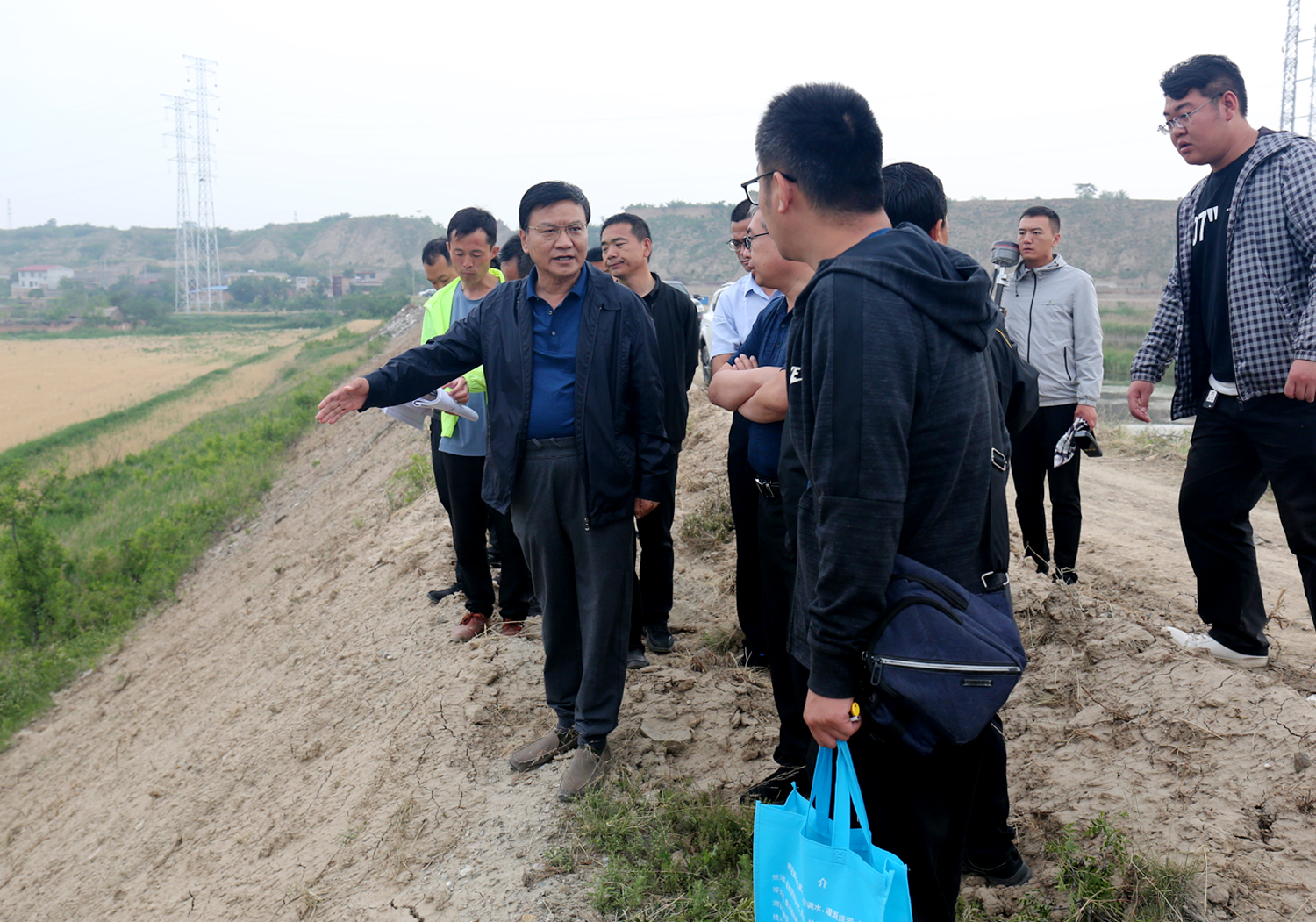 為加快推進鴨子池水生態(tài)綜合提升工程施工進度,5月20日上午,公司董事長崔作銘帶領公司相關人員,會同市水務局、設計單位、項目公司、項目部就環(huán)湖路工程、泵站排水壓力管線工程,步行從鴨子池泵站沿堤壩逐段實地查看,現(xiàn)場辦公,針對施工中所存在的問題,與設計單位、項目公司相關人員現(xiàn)場商議,交換思路,協(xié)商方案。
